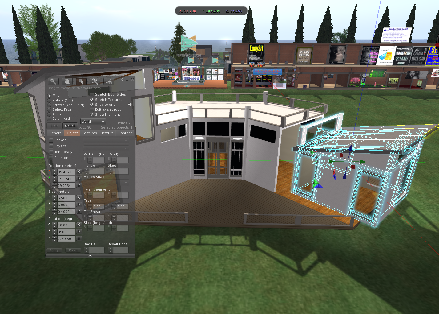 What you need to do it right-click on the object, select Edit, and then choose the Object tab. If you look at the screenshot above you can see what I mean. I was running Firestorm Viewer so if you’re using a different Viewer it might look slightly different.