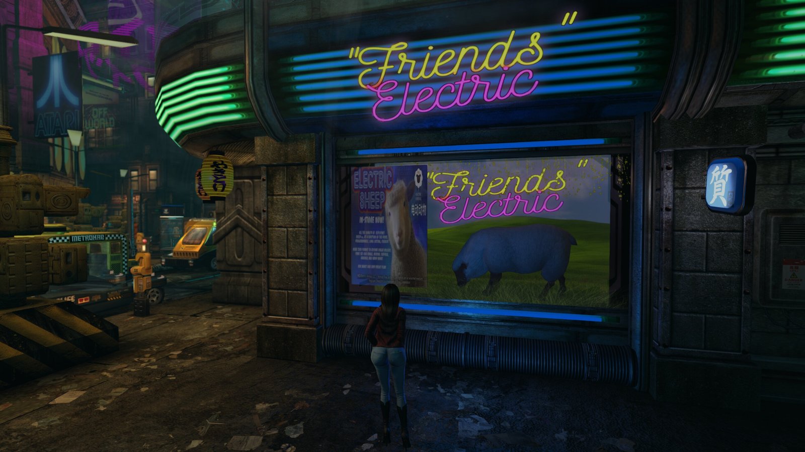 This shop was a nice touch. It’s a reference to the fact that Blade Runner is based on the book “Do Androids Dream of Electric Sheep?” by PK Dick, and also a reference to the song “Are ‘Friends’ Electric?” by Tubeway Army / Gary Numan which is also a reference to the same book.