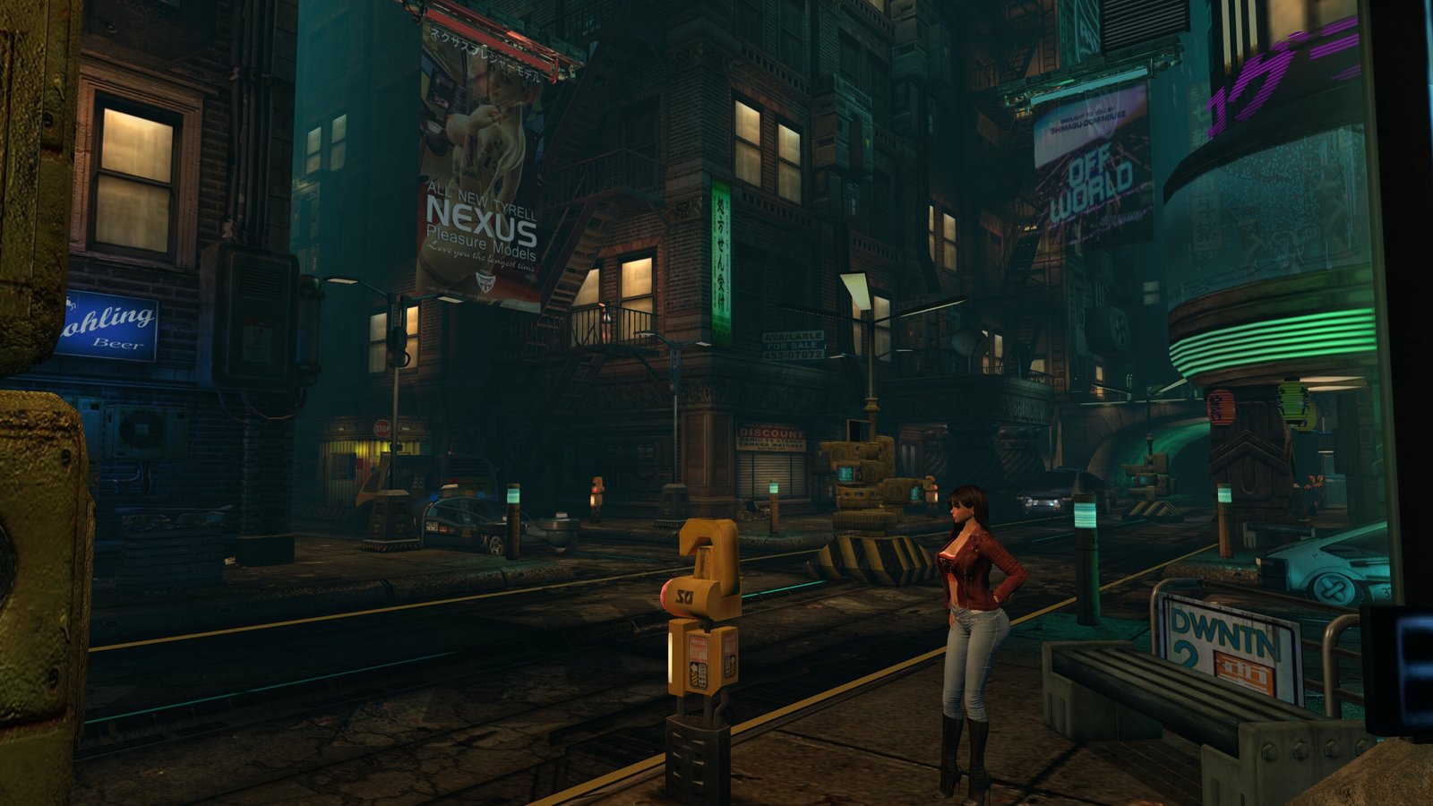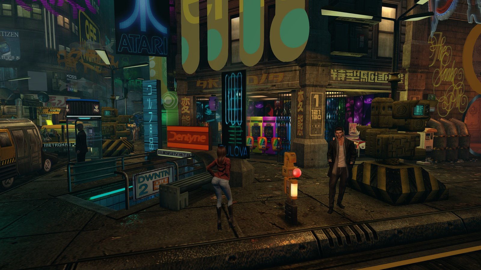 Straight ahead is the Tyrell building. But as you walk towards it, look to your left for steps down to a Jazz Club. Nice.
