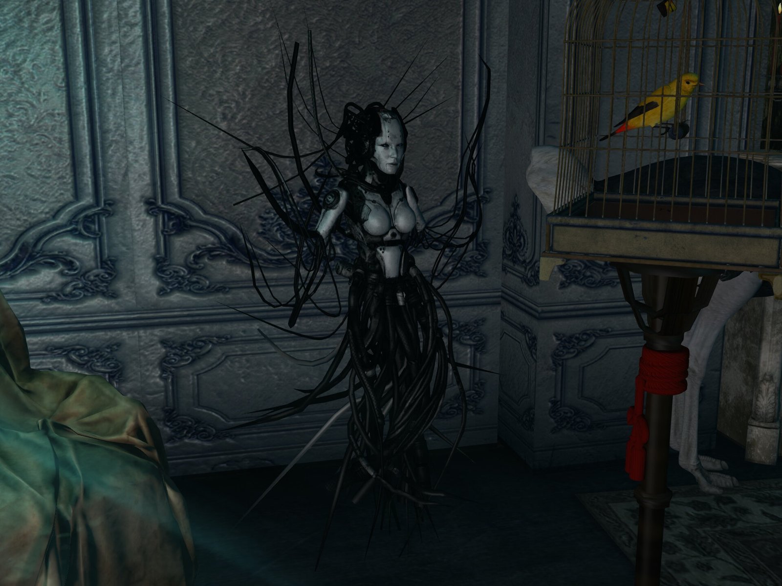 Walking down the corridor, we look into a Dressing Room. Awww, that snake looks lonely. I wonder where its owner is? I wonder if it belongs to Miss Salome? Maybe she had to leave in a hurry.