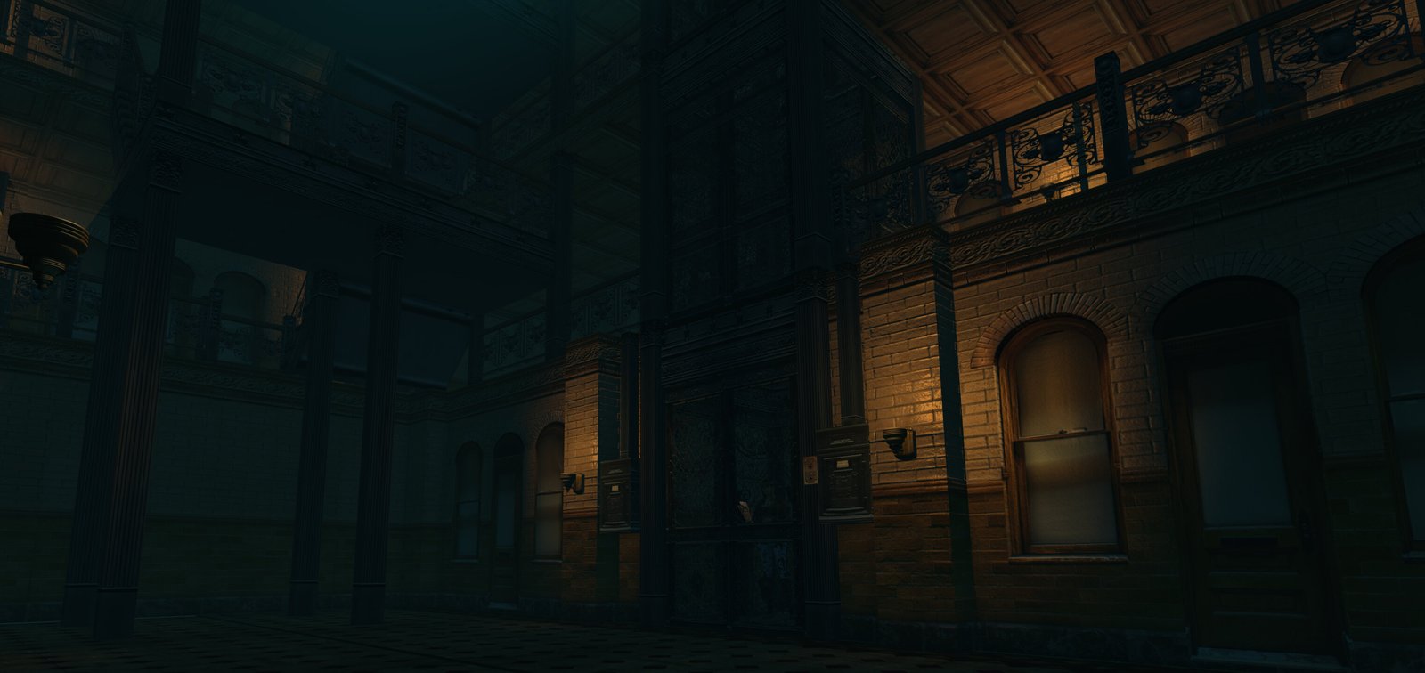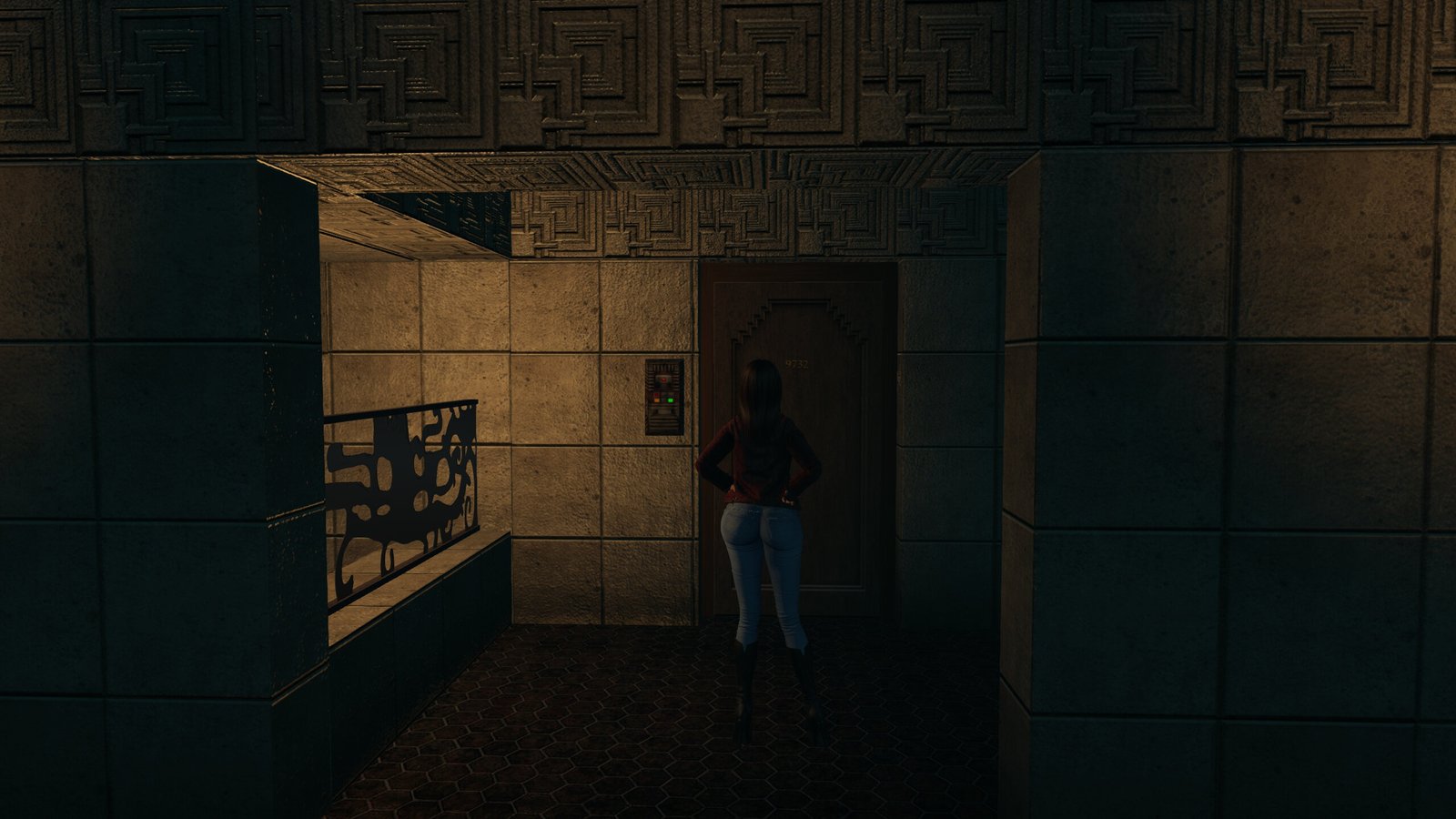 Heading on into the building and riding the elevator, we find some apartments. All are locked except one.