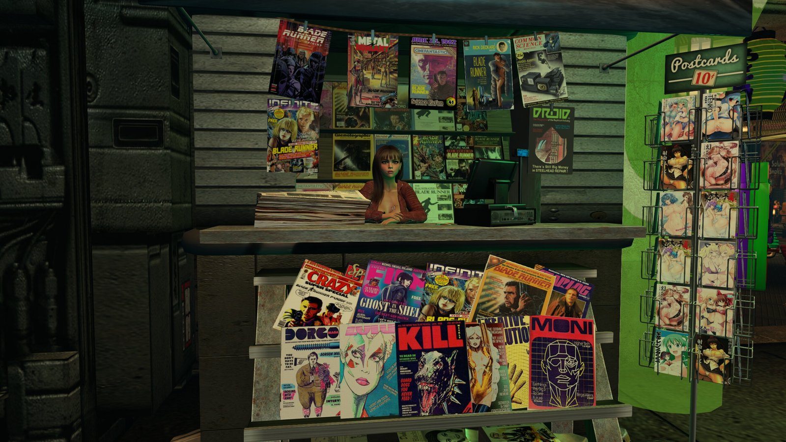 Immediately to the right, there is a News Stand. The cool thing about this is that a lot of the magazines have covers from actual magazines when the original 1982 film came out.