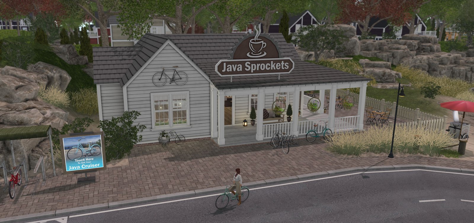 The next place I found was a delightful bicycle-themed cafe called Java Sprockets which has a vendor board giving free “Java Cruiser” ladies bikes.