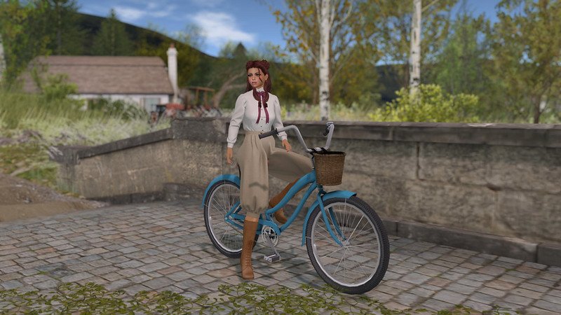 Finally I bought the Sonoma bicycle by {what next}, which actually turns out to be who makes the rezzer that I found at Cala Galadhon, only this version you wear as an attachment and it acts like an AO, meaning you can ride it anywhere. It sells for L$249 for a single colour, but I noticed that it is copy-mod so I bought it in Cream and then retextured it to a lovely Bugatti Blue and also made the flowers in the basket transparent because I felt it suited the type of picture I wanted to take rather better.