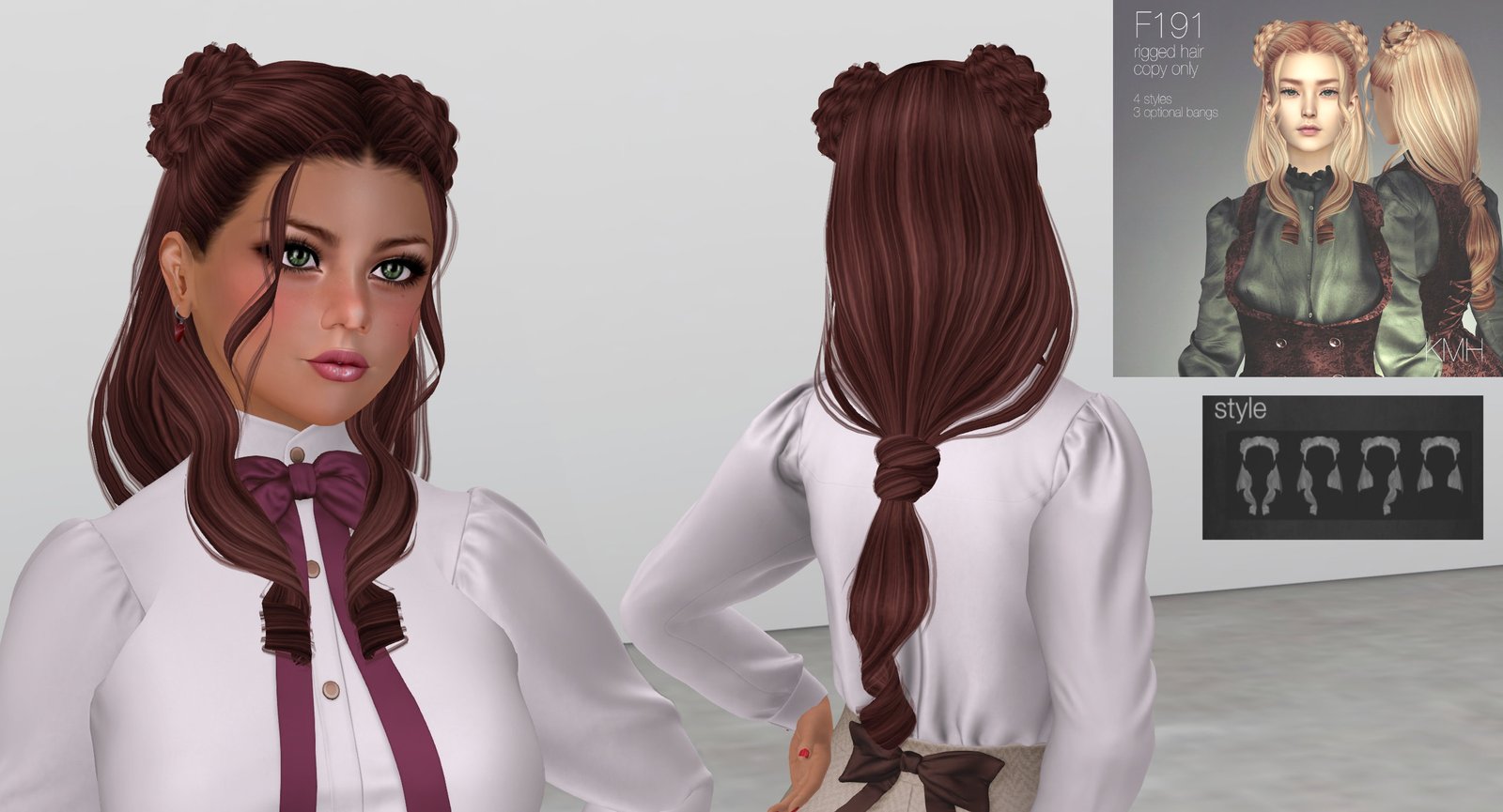 The hair was L$325 for the Natural pack. It is Rigged in two sizes, and also comes with three separate Unrigged bangs, and also the HUD allows 4 different style variants. I’m wearing Bangs2 in the pic, and Bangs3 is a wider version, whilst Bangs1 is a straight fringe.