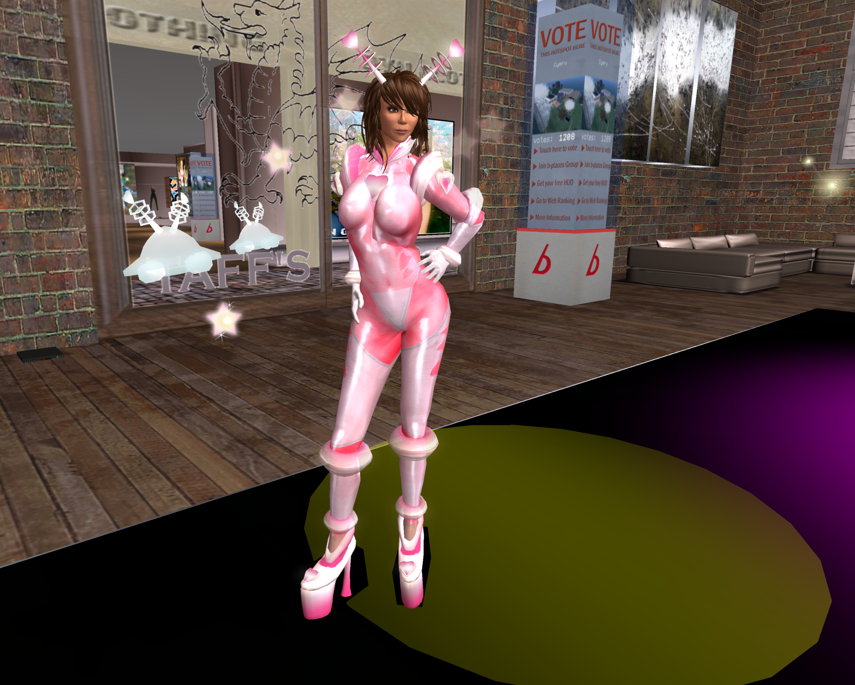 - avatar, Becca, brunette, cute, female, girl, hearts, latex, Rebecca Ashbourne, sci-fi, Second Life, sexy, SL, space bunny, space nymphette, virtual, virtual world, virtual worlds
